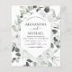 Die preisgekrönten Rose Weiße Flora und Eukalyptus Botanische Grüne Wasserfarben HochzeitsFrühjahr oder Sommerhochzeit Einladungen - beinhalten eine wunderschöne und elegante Schriftzeichen-Typografie mit modernen tropischen botanischen Blume und Grün für die Hochzeitsfeier.