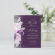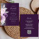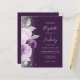 Die links Seite dieses eleganten, modernen Hochzeitseinladens besticht durch einen Blumenstrauß in lila und Lavendeltönen, bestickt mit Silberfolie aus Imitat und Imitat Glitzer und mit silberfarbenem Imitat-Glitzer. Der anpassbare Text kombiniert handgeschriebene, hellsilbergraue Schrift, Copperplate und kursiv Schriftart auf einem lila Hintergrund. Fügen Sie zusätzliche Details auf der Rückseite, zusammen mit einem QR-Code, um Ihren Gästen zu helfen, besuchen Sie Ihre Hochzeitswebsite.