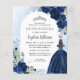 Blauer Blauer Silbergrau Prinzessin Gown Dress Glitzer Sparkle Tiara Crown Butterfly 15. Geburtstag Quinceañera Einladung
