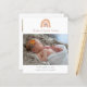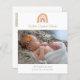 Diese elegante Geburtsankündigungskarte zeigt ein einfaches boho regenbogen Thema. Personalisieren Sie mit 1 Foto auf der Vorderseite und 2 Fotos auf der Rückseite zusammen mit all Ihren Babys Geburtsdaten.