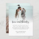 Budget 2 Foto kühne Skript Hochzeit Liebe Danke. Eine preisgünstige SMALLER 4.5" x 5.6" Alternative. Erhältlich in einem SEMI GLOSS 110lb CARD STOCK oder einem SATIN FINISH 80lb THINNER PAPIERSTOCK. Liebe und Dank ist in einem kühlen Set handschriftlich Stil. Personalisieren Sie einfach die Erholung des Textes auf Ihre eigenen Daten und ersetzen Sie das Beispiel-Foto mit Ihrem Favoriten von Ihrem Tag an.