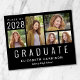 Eine preisgünstige Ankündigung für den Schwarzen Abschluss mit einer 5-Bild-Foto-Collage und "Graduate", die unten in großen, weißen Hauptstädte geschrieben sind. Fügen Sie das Unterrichtsjahr, den Namen und die Schule oder die Universität in der einfachen weißen Typografie hinzu.