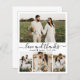Budget, modern, elegant, handschriftlich Hochzeit 4 Foto Collage Danke Karte in weiß und schwarz. Stilvolle Hochzeit dank Karte Vorlage mit vier (4) Foto auf der Vorderseite und ein Foto auf der Rückseite. Mit dem Text "Liebe und Dank" in einer Wirblen Hand geschrieben Typografie Skript Swash-Schwanz Schriftart in schwarz Farbe auf weißem Hintergrund. Personalisieren Sie den individuelle Name und danken Sie Ihnen Nachricht. Kleines Herz zwischen den Namen. Wenn Sie es vorziehen, Ihre Notiz zu handschreiben, löschen Sie einfach den Beispieltext. Wenn Sie Hilfe oder Matching Artikel benötigen, wenden Sie sich bitte an Designer!