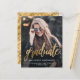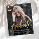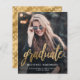Moderne Abschluss-Ankündigung mit einem individuellen vertikalen Foto. Das Wort "Absolvent" erscheint in goldenen Imitat-Folie Skript, mit dem Namen des Absolventen, Schule und Jahr des Abschlusses unten in weißen Sans Serif Schriftart. Ersetzen Sie das Beispielbild einfach durch das Foto Ihres eigenen Absolventen. Ein Schwarzer Farbverlaufsbildschirm trägt dazu bei, die Pop des Textes zu gewährleisten. Auf der Rückseite befindet sich ein glamouröses, goldfarbenes Imitat-Foliendiagramm mit polka dot pattern. Ideal für High School oder Uni-Abschluss.