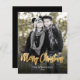 Eine moderne Weihnachtsgrüßkarte mit einem individuellen vertikalen Foto. Die Worte "Frohe Weihnachten" erscheinen in goldenen Imitat-Folie Skript, mit Ihrem Namen und das Jahr unten in weißen Sans Serif Schriftart. Ersetzen Sie das Beispielbild ganz einfach durch Ihr eigenes Lieblingssymbol. Ein Schwarzer Farbverlaufsbildschirm trägt dazu bei, die Pop des Textes zu gewährleisten. Das Gegenteil ist schwarz.