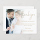 Minimalistisches Foto Gold Script Hochzeit Danke. Ein Preis SMALLER 4,5" x 5,6" Alternative auf einem SEMI GLOSS 110 lb CARD STOCK, der ähnlich dick wie eine Postkarte ist. Es gibt EINS pro Blatt. Ersetzen Sie einfach das Beispielbild mit Ihrem eigenen zu dieser eleganten Hochzeit Dankeschön. Vielen Dank ist in einem Set Handschrift Stil und die Erholung des Textes können Sie leicht personalisieren. Eine abgestufte Tönungsschicht befindet sich auf dem Foto, sodass Ihr Text als teilweise überlagert betrachtet werden kann.