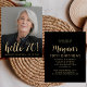 An der Vorderseite dieses 70. Geburtstags lädt der Gast des Fotos der Ehre mit einem goldfarbenen Textüberlagerungsstück ein. Die Phrase "Hallo 70!" erscheint in einer goldfarbenen Kalligraphie-Schrift, gefolgt vom Ehrengast und Geburtstag im serifenlosen Sans-Schriftart. Ein dunkler Bildschirm hilft, den Text-Pop zu machen. Passen Sie die Rückseite mit Namen und Party-Details auf einem schwarzen Hintergrund an. Eine tolle Art, jemanden zu feiern, der siebzig wird! (HINWEIS: Die Mittelansätze werden nicht automatisch in diese Haushaltseinladung aufgenommen. Um Umschläge zu Ihrer Bestellung hinzuzufügen, verwenden Sie bitte das Dropdown-Menü "Umschläge".)