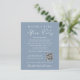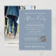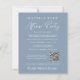Das preisgünstige, staubblaue Ambiente oder die private Hochzeitsankündigung und Hochzeitsempfehlung mit "Happily Ever After Party" in weißer Typografie und modernem Weiß-Script. Personalisieren Sie Ihre Ankündigung und Einladung und fügen Sie Ihre Namen in ein signaturähnliches Skript ein. Geben Sie die URL-Adresse Ihrer Hochzeitswebsite ein, um einen QR-Code zu erstellen, damit die Gäste alle Details prüfen und online UAWG machen können. Auf der Rückseite finden Sie Ihr Lieblings-Foto, Ihre Vornamen und Ihr Hochzeitstermin.