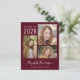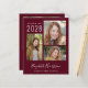 Eine preisgünstige Bordeaux-Abschluss-Ankündigung und Party Einladung mit einer 3-Foto-Collage, "Graduate" in einer stilvollen weißen Schrift, und den Namen, das Klassenjahr und die Schule oder Universität in schlicht weißer Typografie. Auf der Rückseite fügen Sie ein zusätzliches Bild und Ihre Graduierungsparty Details.