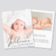 Eine preisgünstige Option, um die Geburt Ihres Babys anzukündigen, mit seinem oder ihrem Foto mit "Welcome", das oben in einem stilvollen Drehbuch steht. Fügen Sie unten seinen Namen, das Geburtsdatum und die Geburtsdaten hinzu. Fügen Sie auf der Rückseite ein weiteres Foto und eine personalisierte Meldung hinzu. Dieses halbglänzende Haushaltspapier ist gewichtsähnlich wie Foto. Es ist auch eine größere 12x18-Kartenversion verfügbar (für den Link die Meldung).