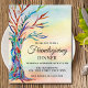 Laden Sie Ihre Freunde mit dieser einzigartigen Einladung zu einem freundschaftlichen Abendessen ein. Es verfügt über einen Mosaikbaum in den Farben des Regenbogens auf einem Aquarellboden. Einfach anpassbar. Original Mosaik und Wasserfarbe © Michele Davies.