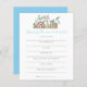 Boho Game Advice Junge Mutter Vater Blue Boy Baby Dusche. Eine preisgünstige Papieralternative mit einer Größe kleiner 4,5" x 5,6". Umschläge sind optional. Ein lustiges Spiel für Ihre Babydusche, frag Ihren Gästen, die Räume auszufüllen, um die Fragen zu beantworten. Eine boho-artige Darstellung des Regals mit Pflanze und Babyspielzeug ist oben und stilvoll informelles Set-Skript für Header in blau und eine koordinierende blaue Hintergrund auf der anderen Seite. Sie können die Erholung des Textes ganz einfach an Ihre eigenen Anforderungen anpassen und die Hintergrundfarben ändern, wenn Sie es wünschen.