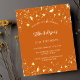 Ein verbrannter, orangefarbener Hintergrund mit goldenen Sternen. Personalisieren und fügen Sie einen Namen und Party-Details hinzu. Der Name wird mit einem handgeschriebenen Stilskript geschrieben, mit weißen, farbigen Buchstaben. 1 Blatt = 1 Einladung mit Druckkante bis Kante.