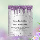 Eine moderne, stilvolle und glamouröse Einladung für eine 21. Geburtstagsfeier (oder jedes Alter). Ein Imitat silber metallisch aussehender Hintergrund mit lila Imitaten Glitzer Tropfen, Glitzern. Der Name ist mit einem modernen handgeschriebenen Stilskript geschrieben. Personalisieren Sie Ihre Party-Daten und fügen Sie sie hinzu.
