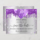 Eine gmädchenhafte und trendige Save the Date-Karte für eine 18. Geburtstagsfeier (oder jedes Alter). Ein Imitat silber aussehender Hintergrund dekoriert mit lila Imitaten Glitzer und Ballons. Personalisieren und fügen Sie Datum und Name/Alter hinzu. Der Text: Save the Date ist mit einem großen angesagten, handgeschriebenen Stilskript geschrieben.