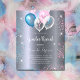 Für ein Geschlecht zeigen Babydusche. Ein Imitat silber metallisch aussehender Hintergrund. Glitzer und Blau, rosa und weiße Ballons, blau-rosa Imitate Glitzer Staub. Personalisieren und fügen Sie den Namen der Mutter zu sein und Party-Details. Der Name und der Text: Gender Reveal werden mit einem handgeschriebenen Stift geschrieben