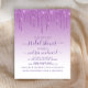 Ein elegantes, modernes Design mit einem lila, ombernen Hintergrund und einem oberen Rand von lila Glitzer-Tropfen. Die Wörter "Brautparty" und der Name der zukünftigen Braut erscheinen in Kleinbuchstaben Kalligraphie-Skript mit dekorativen Swashes am Anfang und Ende, wobei der verbleibende Text im serifenlosen Schriftart Sans erscheint. Der lila Hintergrund und der Glitzer Tropfen Rand werden auf der Rückseite wiederholt. (Um die Swashes behalten, ersetzen Sie nur die Buchstaben des Namens der Braut, die die Symbole verlasse.)