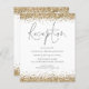Eine günstige BUDGET-Alternative für eine kleinere Größe von 4,5 x 5,6 Zoll, die ein Gewicht von 110 lbs hat, die ähnlich dick ist wie eine Postkarte (sie ist jedoch nicht als Postkarte geeignet). BITTE BEACHTEN SIE, DASS ES EINE pro Blatt gibt. Budget Gold Glitzer Hochzeitsempfang. Ein modernes Set-Skript für die Überschrift und die Erholung des Textes, das Sie leicht personalisieren können, mit Imitaten Glitzer-Ränder am oberen und unteren Rand auf beiden Seiten in Gold.