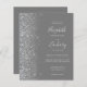 Die links Kulisse dieser eleganten, modernen Hochzeitseinladung besticht durch eine silberne Imitat-Glitzer-Grenze. Der individuell anpassbare Text kombiniert handschriftlich, kopperplate und kursiv Schriftart auf grauem Hintergrund. Die Rückseite bietet Platz für Hochzeitsdetails auf einem soliden grauen Hintergrund, zusammen mit einem QR-Code können Gäste scannen, um Ihre Website und UAWG.