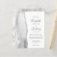 Der links Rand dieser eleganten, modernen Hochzeitseinladung besticht durch eine grau-weiße Aquarellgrenze, die mit Imitaten aus silberem Glitzer bestickt ist. Der anpassbare Text kombiniert Handschrift, Copperplate und kursiv Schriftart in Holzkohlegrau auf weißem Hintergrund. Auf der Rückseite ist ein passendes grau-, weiß- und silberfarbenes Design erkennbar. HINWEIS: Umschläge sind nicht automatisch in diese Einladungen mit dem Budget eingeschlossen. Bitte denken Sie daran, die Option "weiße Umschläge" zu wählen!