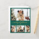 Budget Modern Elegante Herzschrift 4 Foto Collage Frohe Weihnachts Script Holiday Thin Card. Notiz: dünner als Postkarte! Dieses festliche Minimum vier (4) Foto Urlaubskarte Vorlage verfügt über eine hübsche Foto Collage, ein kleines doodle Herz und sagt Frohe Weihnachten! Der "Frohe Weihnachten"-Grußtext ist in einem schönen handgeschriebenen Typografie-Swash-Schwanz-Schriftart in Gold auf grünem Hintergrund geschrieben. Auf der Rückseite finden Sie Textvorlage, doodle Herzmotiv und Kiefernbäume. Hübsches niedliches Budget billige, dünne Grußkarte ist eine gute Wahl für Ihre Familie und Freunde in dieser Weihnachts- und Feiertagssaison.