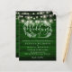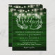 Mit hübschen Saitenlichtern und einem handgezeichnet Blumengarten ist diese elegante, preiswerte rustikale Holzhochzeit personalisiert mit Ihren Informationen in schicken Schriften auf smaragdgrünen Holzpaneelen. Entwickelt von Thisisnotme©