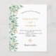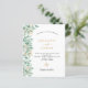 Ein eleganter weißer Hintergrund mit grünen und Imitaten, goldgelben Pflanzen, Grünpflanzen und Blattwerk. Personalisieren und fügen Sie Ihre Namen und Hochzeitsdetails. Schwarze und goldfarbene Buchstaben. Zurück: grüne Hintergrundfarbe.