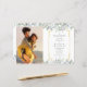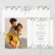 Eine stilvolle preiswerte Hochzeitseinladung mit Ihrem besonderen Foto und hübschen weise und lila Blätter, die sich über einen eleganten Goldrahmen schlängeln, der Ihr Set mit Ihren Hochzeitsdetails in klassisch elegantem Text umschließt. Entwickelt von Thisisnotme©