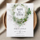 Mit unserer preisgünstigen Hochzeit können Sie Ihren besonderen Tag mit Eleganz und Erschwinglichkeit verkünden. An der Vorderseite befindet sich ein hübscher, grüner Kranz, der die Überschrift "Save the Date" umrundet und serf-Schriftart mit extravagantem Drehbuch wunderschön kombiniert. Unter dem Kranz werden Ihre Namen und Ihr Hochzeitsdatum elegant angezeigt. Ideal für Paare, die ihre spannenden Neuigkeiten gewollt haben, ohne die Bank zu brechen!