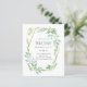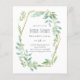 Hübsches Aquarell-Grün, Salbei-Blätter mit goldgeometrischer Rahmen auf diesem modernen Hochzeitsgegenstand. Teil einer größeren Budget Hochzeitskollektion, die Einladungen, Save the Date, uAwg mit Menüoptionen, Etiketten für Favoriten und Geschenke und Umschläge, Brautparty lädt und mehr beinhaltet.