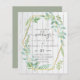 Das moderne Hochzeitsgeschirr ist mit einem weißen, tropfenden Holzhintergrund mit hübschen wasserfarbenen, grünen Salbei-Blätter und goldenem geometrischem Rahmen versehen. Teil einer größeren Kollektion mit günstigen Hochzeitseinladungen, speichern Sie die Daten, uAwg, Labels und mehr.