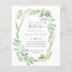 Hübsches Aquarell-Grün, Salbei-Blätter mit goldgeometrischer Rahmen auf diesem modernen Hochzeitsgegenstand. Teil einer größeren Budget Hochzeitskollektion, die Einladungen, Save the Date, uAwg mit Menüoptionen, Etiketten für Favoriten und Geschenke und Umschläge, Brautparty lädt und mehr beinhaltet.