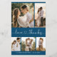 Budget Modernes, elegantes Herz Schriftart Script Hochzeit 5 Foto Collage Danke Karte in Mittel Navy Blau. Stilvolle, minimalistische Hochzeitskartenvorlage mit fünf (5) Gitter-Foto-Collage auf der Vorderseite und einem (1) Foto auf der Rückseite. "Liebe und Dank" Text in einer kursiven Hand geschrieben Kalligrafie niedliche Herz-Schriftart-Skript mit Swash-Schwanz. Personalisieren Sie mit Ihrem Namen und danke Ihnen Nachricht. Wenn Sie Hilfe oder Matching Artikel benötigen, wenden Sie sich bitte an Designer!