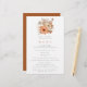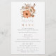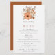 Hochzeitsmenü im Herbst. Ein Budget von 5,5 Zoll x 8,5 Zoll, Ein Blumenstrauß in Herbstfarben steht oben und lässt den Text unten leicht personalisieren. Auf der Rückseite befindet sich ein passender, terracotta-brauner Hintergrund. Sie können auch den Stil und die Farben des Schriftartes sowie die Hintergrundfarben auf der Vorder- und Rückseite ändern, wenn Sie dies über die Option Klicken Sie auf Weitere Einstellungen.