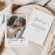 Budget Hochzeit Dankeschön Karten, die ein Foto auf der Vorder- und Rückseite haben. Die Dankeschön-Karten enthalten eine moderne, handgeschriebene, kursive Schriftzeichen-Typografie, die elegant, einfach und modern nach Ihrer Hochzeitsfeier zu benutzen sind.