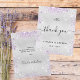 Eine Hochzeit Dankeschön Karte. Ein Imitat silber metallisch aussehende Hintergrundfarbe. Mit lila Imitaten Glitzer Staub. Auf der Vorderseite, ein großes handgeschriebenes Skript und der Text: Danke, Ihre Monogramm Initialen, Namen und ein Datum. Zurück: Personalisieren und hinzufügen Sie Ihren Dank Notizen und Namen.