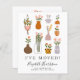 Einfache und preisfreundliche boho chic neue Zuhause und Änderung der Adresse bewegende Ankündigung mit hygge-inspiriert Terrakotta, Rosa, Korallen und Lavendel Illustrationen von verschiedenen Haus-Pflanze in Vasen und minimale moderne Typografie. Auf der Vorderseite personalisieren Sie Ihren Namen, "I've Moved" und Ihre neue Adresse. Auf der Rückseite können Sie Ihre Ankündigung detaillierter personalisieren und auf Wunsch eine Telefonnummer und E-Mail angeben.