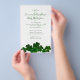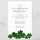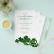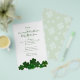 Sehr erschwinglich, irisch Thema, Hochzeitseinladungen. Auf weißem Flyer mit dunkelgrünem Text gedruckt, rette Ihnen diese einladende Vorlage ein Bundle. Grüne Kleeblatte entlang der Unterseite und klebriges Muster auf der Rückseite. Geben Sie den Empfang und die UAWG Informationen, um dieses Budget Hochzeit Einladung. Die Namen des Ehepaares befinden sich in einem modernen handgeschriebenen Schriftart über einem großen "und"-Zeichen. Beachten Sie, dass eine Änderung der Größe das Design verändern wird.