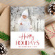 Carte de Noël économique, élégante et moderne avec votre photo et "Happy Holidays" en écriture rouge saisonnière et typographie vintage. Ajoutez votre nom et votre année optionnelle en simple typographie rouge.