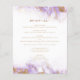Dieses elegante, moderne Hochzeitsmenü besticht durch einen lavendelfarbenen Marmorrand, der mit einer Goldfolie aus Imitaten bespannt ist. Der anpassbare Text kombiniert goldfarbenes Skript mit serifenem Schriftart. Die Rückseite ist mit einem passenden Lavendel- und Goldmarmor-Design versehen.