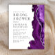 Die rechte Seite dieses eleganten Brautduscheinladens besticht durch eine lila Aquarellgrenze, die mit Imitaten aus silberfarbenem Glitzer bestickt ist. Der anpassbare Text kombiniert kohlegraue Serifen, Kupferplatte und kursiv Schriftart auf weißem Hintergrund. Auf der Rückseite ist ein lila und silberfarbenes Design erkennbar.