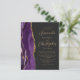 Der links Rand dieser eleganten, modernen Hochzeitseinladung zeichnet sich durch eine lila Aquarellgrenze aus, die mit Imitaten mit goldenem Glitzer bestickt wurde. Der anpassbare Text kombiniert goldfarbenes Skript und singt serifenlose Schriftart auf schwarzem Hintergrund. Auf der Rückseite ist ein lila und goldenes Design zu sehen.