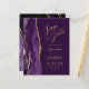 Der links Rand dieser eleganten modernen Hochzeit bewahrt die Dattelkarte mit einem lila Aquarellstreifen, der mit Imitaten mit goldenem Glitzer bestickt ist. Der anpassbare Text kombiniert goldfarbenes Skript und sans Serif-Schriftart auf einem Pflaumenhintergrund. Auf der Rückseite ist ein lila und goldenes Design zu sehen.