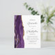 Der links Rand dieser eleganten, modernen Hochzeitseinladung zeichnet sich durch eine lila Aquarellgrenze aus, die mit Imitaten mit goldenem Glitzer bestickt wurde. Der benutzerdefinierbare Text kombiniert das kohlegraue Skript und setzt serifenlose Schriftart auf weißem Hintergrund. Die Rückseite bietet Platz für Hochzeitsdetails auf einem soliden, weißen Hintergrund, zusammen mit einem QR-Code können Gäste scannen, um Ihre Website und UAWG zu besuchen, was die Kosten für den Druck und Versand separater RSVP-Karten rette.