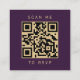 Die links Seite dieser eleganten, modernen Hochzeitswebseiten-Umzäunungskarte weist einen vergoldeten Glitzer-Rahmen für Imitate auf. Der Titel erscheint in goldfarbenem Schriftzeichen, darunter kann der Text im Kupferstich-Schriftart auf einem dunklen lila Hintergrund angepasst werden. Laden Sie den QR-Code Ihrer Hochzeitswebsite hoch, um das Beispielbild auf der Rückseite zu ersetzen, gerahmt durch die Worte "scanne mich auf UAWG".