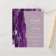 Der links Rand dieser eleganten, modernen Hochzeitseinladung zeichnet sich durch eine lila Aquarellgrenze aus, die mit Imitaten silbernen Glitzer bestickt ist. Der anpassbare Text kombiniert weiße Handschrift, Copperplate und kursiv Schriftart auf einem lila Hintergrund. Auf der Rückseite ist ein lila und silberfarbenes Design erkennbar.