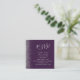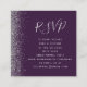 Der links Rand dieser eleganten, modernen Hochzeitswebseiten-Umzäunungskarte weist eine silberne Imitat-Glitzer-Grenze auf. Der Titel erscheint in silbergrauem Schriftzeichen, mit unten einstellbarem Text in Copperplate-Schriftart auf einem lila Hintergrund. Geben Sie Ihre Hochzeitswebsite-URL ein, um automatisch einen QR-Code auf der Rückseite zu generieren, gerahmt durch die Worte "scanne mich auf UAWG".