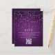 Budget Lila String Lights QR Code Wedding RSVP. Gradient Hintergrund mit schönen String-Leuchten. Die Farbe und der Typ des Schriftartes können über das Menü Bearbeiten geändert werden. Ein Preis-Leistungs-Verhältnis kleiner 4,5 x 5,6 Zoll Alternative standardmäßig zur halb Glanz Option, die für Einladungen empfohlen wird und eine ähnliche Dicke wie eine Postkarte hat. Die Satin-Option ist viel dünner. Der QR-Code ist eine bequeme Möglichkeit für Ihre Gäste, online zu antworten. Geben Sie einfach Ihre Webseite Antwort URL und Ihr QR-Code wird automatisch generiert.