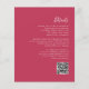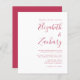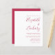 Diese einfache, moderne Hochzeitseinladung mit magenta rosa Text auf einem weißen Hintergrund. Fügen Sie die Namen der Braut und Bräutigam in stilvoller Handschrift Kalligraphie und die Details in sans serif Schriftart. Die Rückseite bietet Platz für Hochzeitsdetails auf einem soliden magentafarbenen Hintergrund, zusammen mit einem QR-Code können Gäste scannen, um Ihre Website und Ihre UAWG. HINWEIS: Umschläge sind nicht automatisch in diese Einladungen mit dem Budget eingeschlossen. Bitte denken Sie daran, die Option "weiße Umschläge" zu wählen!
