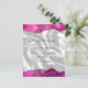 Die Ober- und Unterkante dieser eleganten, modernen Hochzeitseinladung zeichnet sich durch einen magentafarbenen Wasserfarbenstreifen aus, der mit Imitaten silbernen Glitzer bestickt ist. Der anpassbare Text kombiniert Handschrift, Serif und kursiv Schriftart in Holzkohlegrau auf einem Hintergrund aus weißer Seide. Die Rückseite ist mit einem magentafarbenen und weißen Seidenmuster dekoriert.